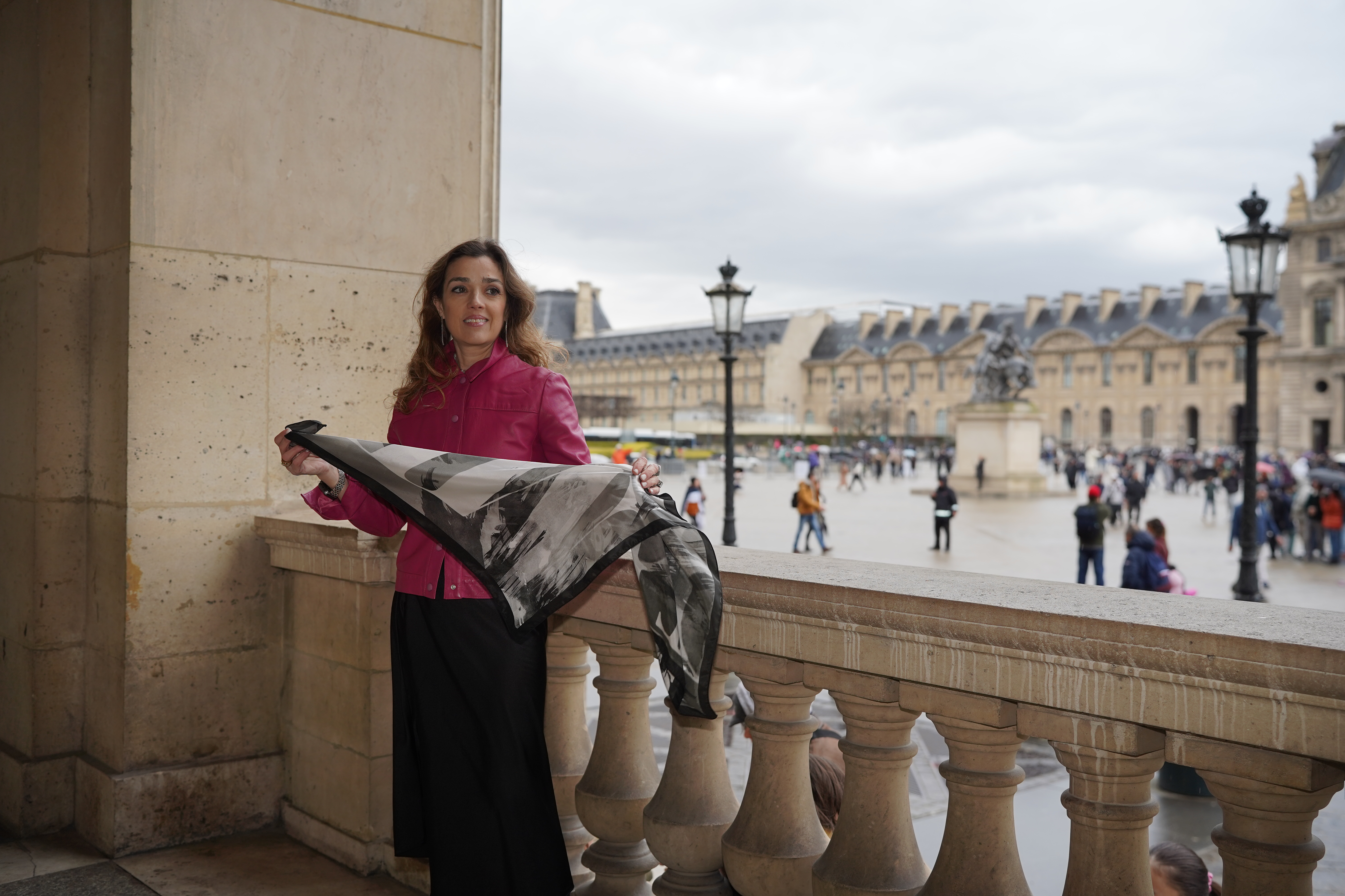 “The scarf arrived. It’s absolutely beautiful. Besides the colors, which are that beautiful fall orange theme, I love how refined the silk material is. It drapes and falls just like a light breeze, barely touching the skin. It is such a beautiful product. Moreover, I love the typography of your label, the CLU insignia AND your real signature, Claudia Palmira. I salute your, for the gestalt of the whole design. Brava, my darling!!