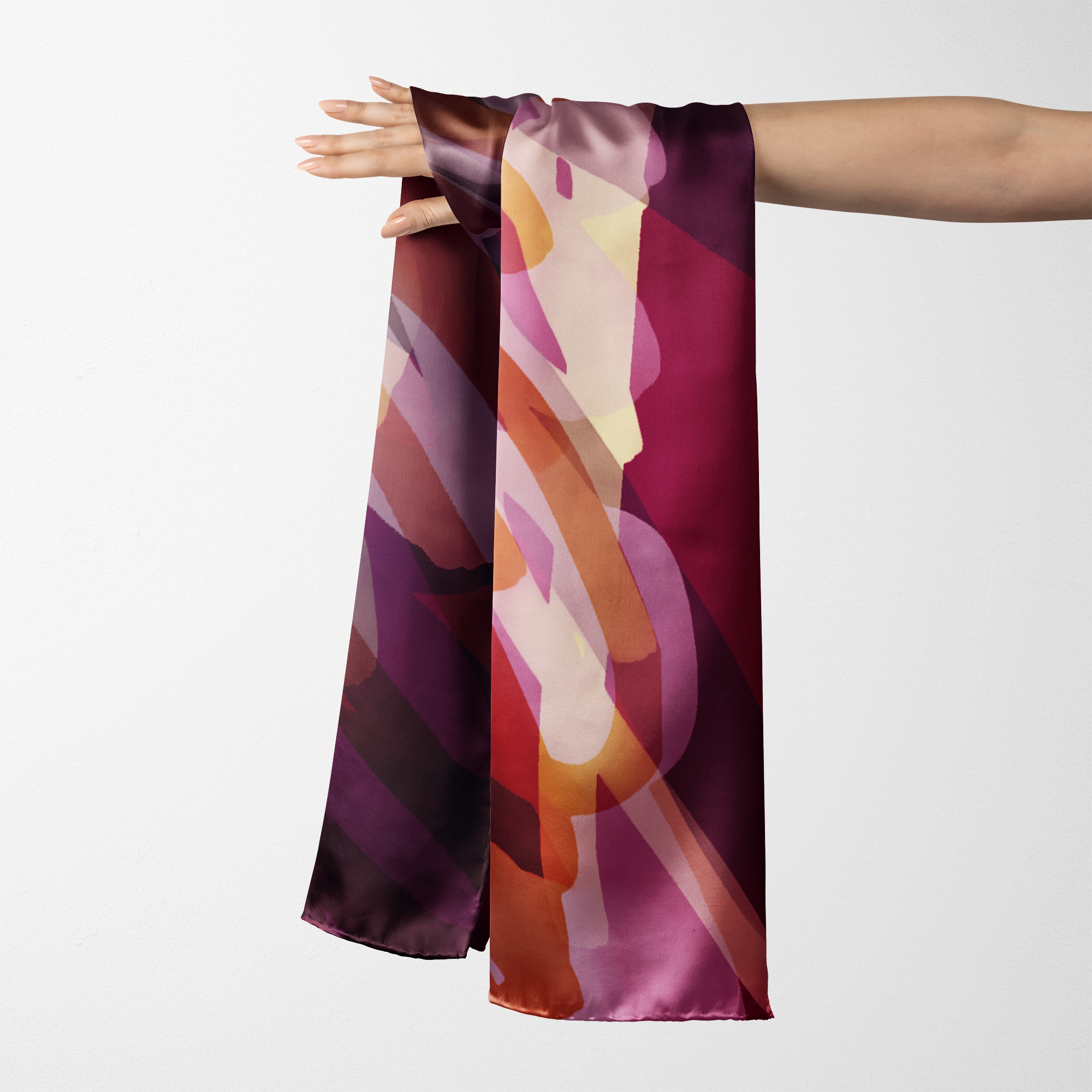 “In this collection of scarves, I offer an abstract expression of the aura of a City or place that has meaning for me, using color and brush stroke to evoke an essence. "