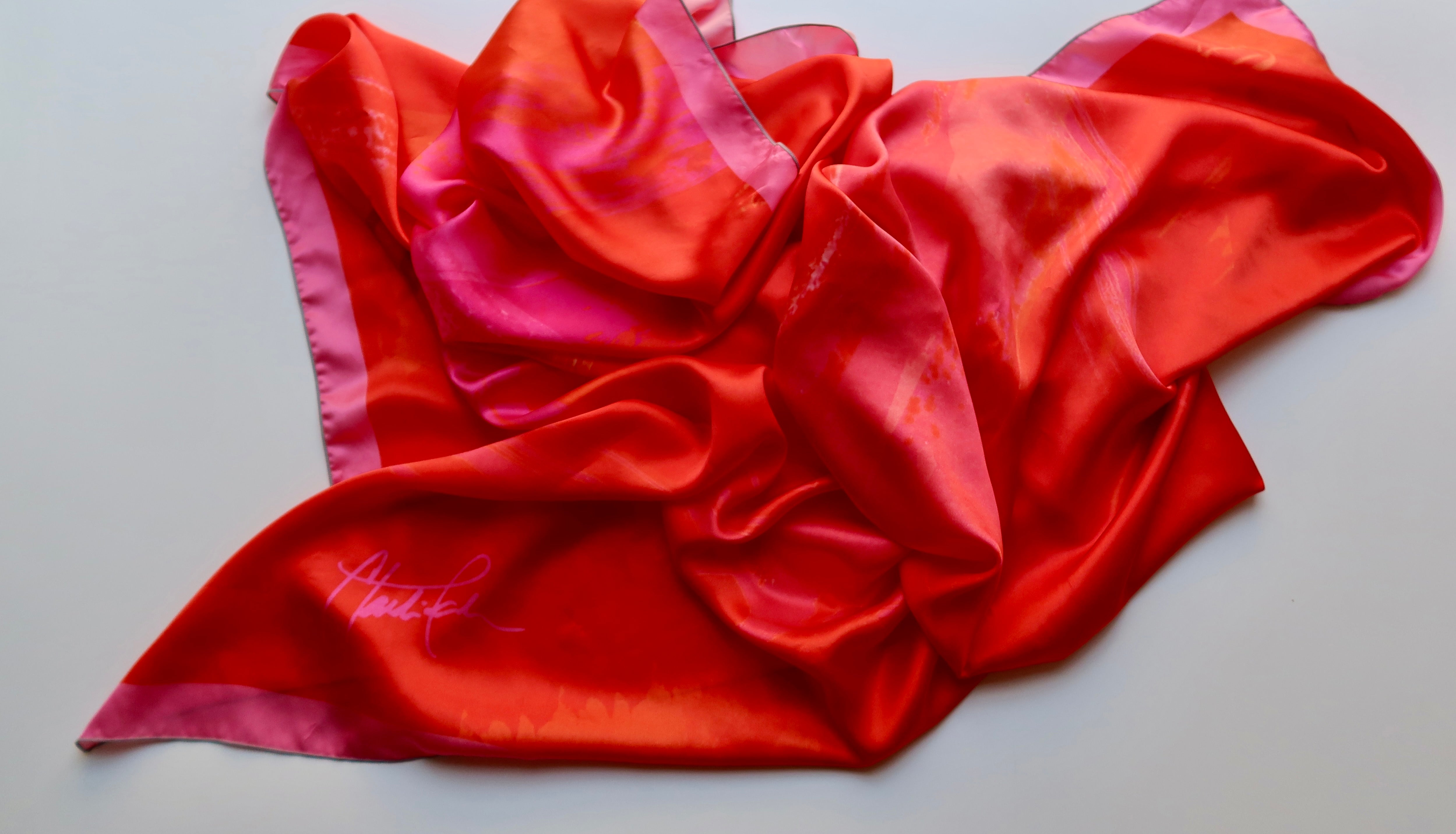 Select from these artist-designed, 100% silk scarves available immediately – as long as the inventory lasts! Each one has been custom printed and can be experienced in the Rome a{r}telier – or shipped anywhere in the world. Our scarves come delivered in iconic pink packaging for a unique and unforgettable gift.
