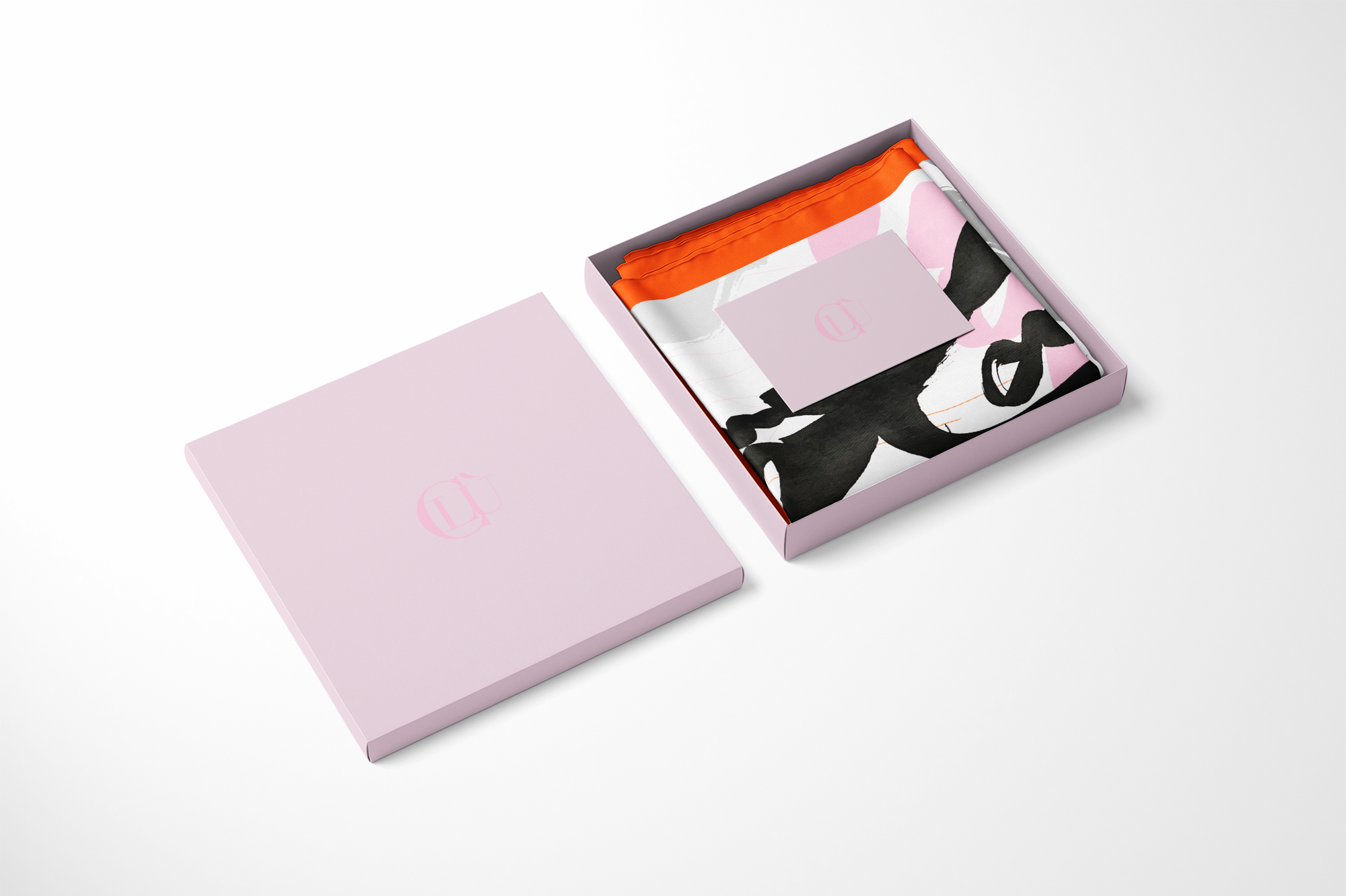 The silk scarf comes wrapped in our signature pink packaging and includes an authenticity card signed by the artist.