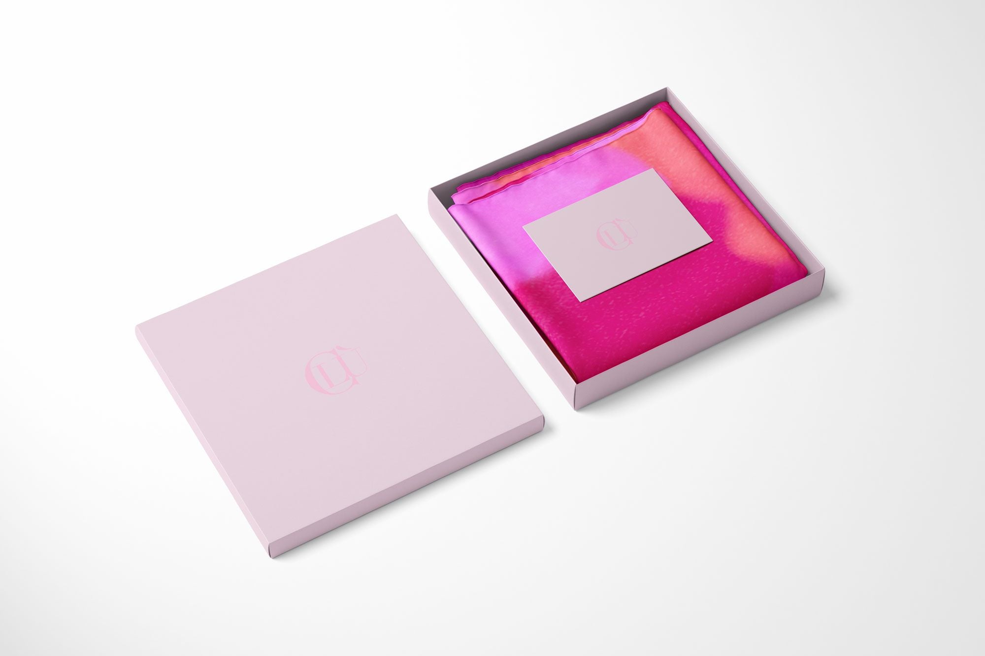La sciarpa di seta viene fornita avvolta nella nostra esclusiva confezione rosa e include una carta di autenticità firmata dall'artista.