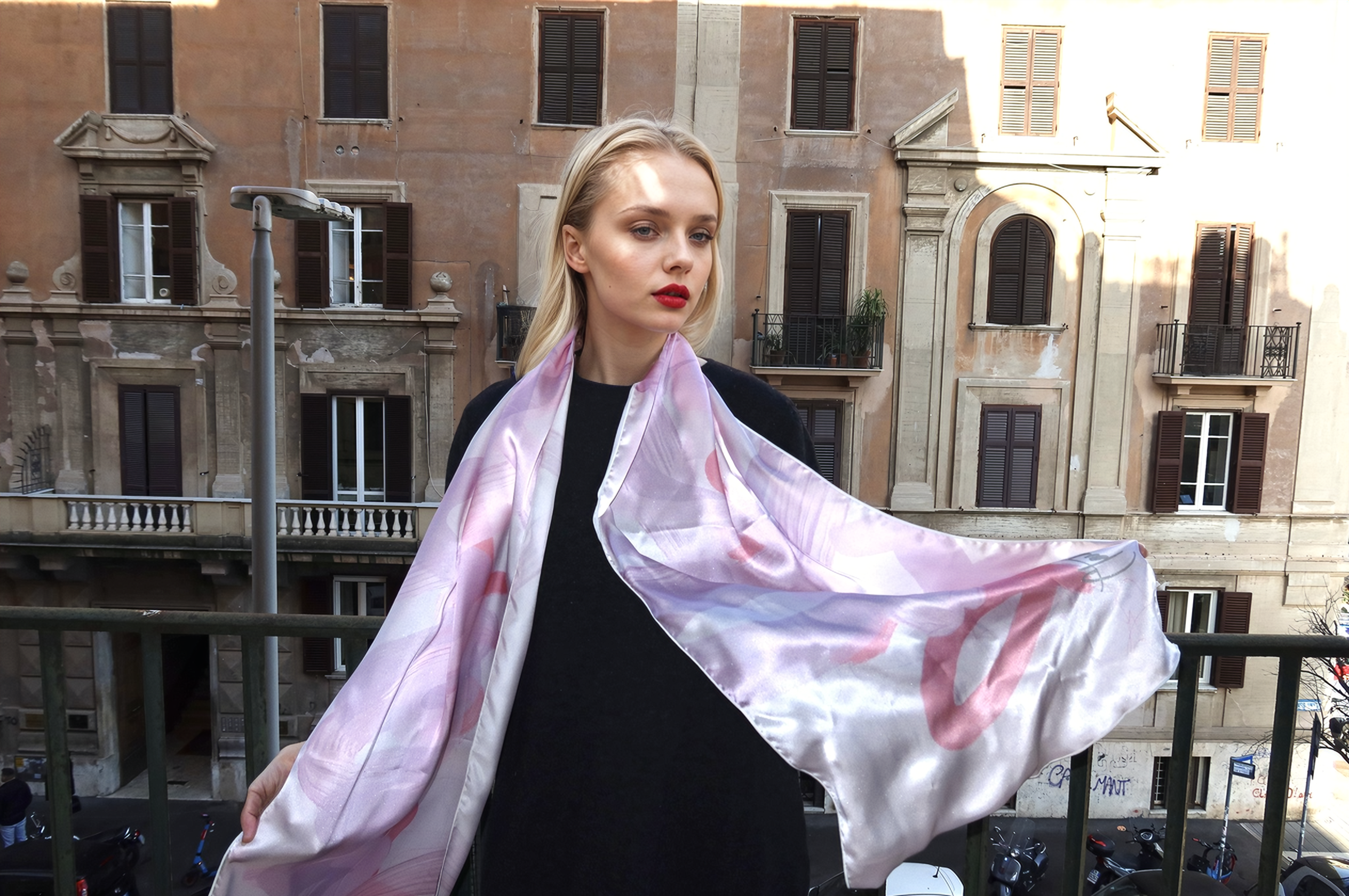 Progettato e realizzato in Italia in seta di lusso al 100%. Tutti i disegni sono opere originali di Claudia Palmira ©.