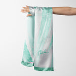 Printed with reactive inks, which guarantee that the colors will retain their vibrancy, each scarf is finished with a machine rolled baby hem for extra durability.