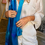 Questo è il bestseller Mykonos della serie Scarf City: una sciarpa pittoresca e di lusso che porta il Mediterraneo nel tuo guardaroba.
