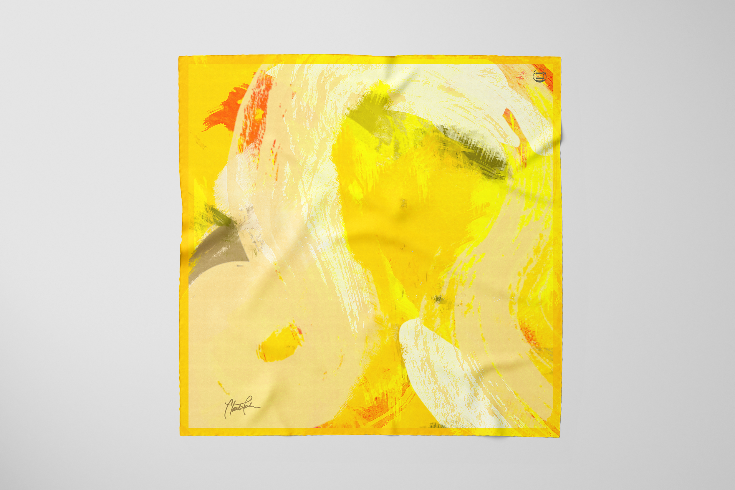 The silk scarf comes wrapped in our signature pink packaging and includes an authenticity card signed by the artist.