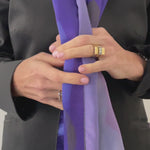 Introducing O Soave, a mesmerizing silk scarf inspired by Giacomo Puccini's La Bohème and one of the artist's beloved operas. This enchanting piece is awash in deep purple hues with varying shades of indigo and blue, capturing the essence of the opera's first act and the theme of love at first sight.