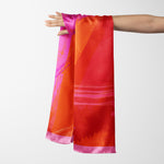 Printed with reactive inks, which guarantee that the colors will retain their vibrancy, each scarf is finished with a machine rolled baby hem for extra durability.