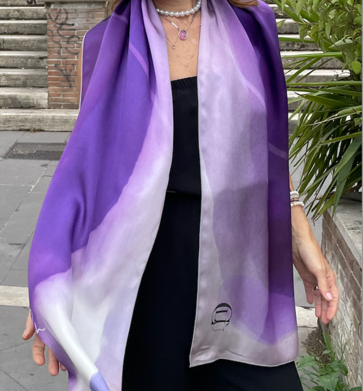 Immerse yourself in the mesmerizing beauty of this unique creation and the entire Ethereal line, where the delicate textures of seashells inspire exquisite hand-painted replicas by the artist. Each scarf, an original work from the artist's studio, is printed on luxurious 100% pure silk. Discover a wearable work of art that adds a touch of color to your day, echoing the timeless elegance found within seashells.