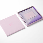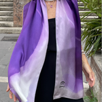 This luxury scarf features deep-hued purple tones melding into watercolor white, creating a richly colored silk accent. This is a painting inspired by the inside of a seashells.