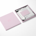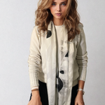 This version of the scarf, unlike its framed counterpart, features the same exquisite design without the fuchsia border, allowing the vibrant spirit of the aria to take center stage. Here, minimalistic black and silver handmade strokes float on a soft white background, making this a versatile design. It remains a visual representation of the exhilaration of going from joy to joy, always free.