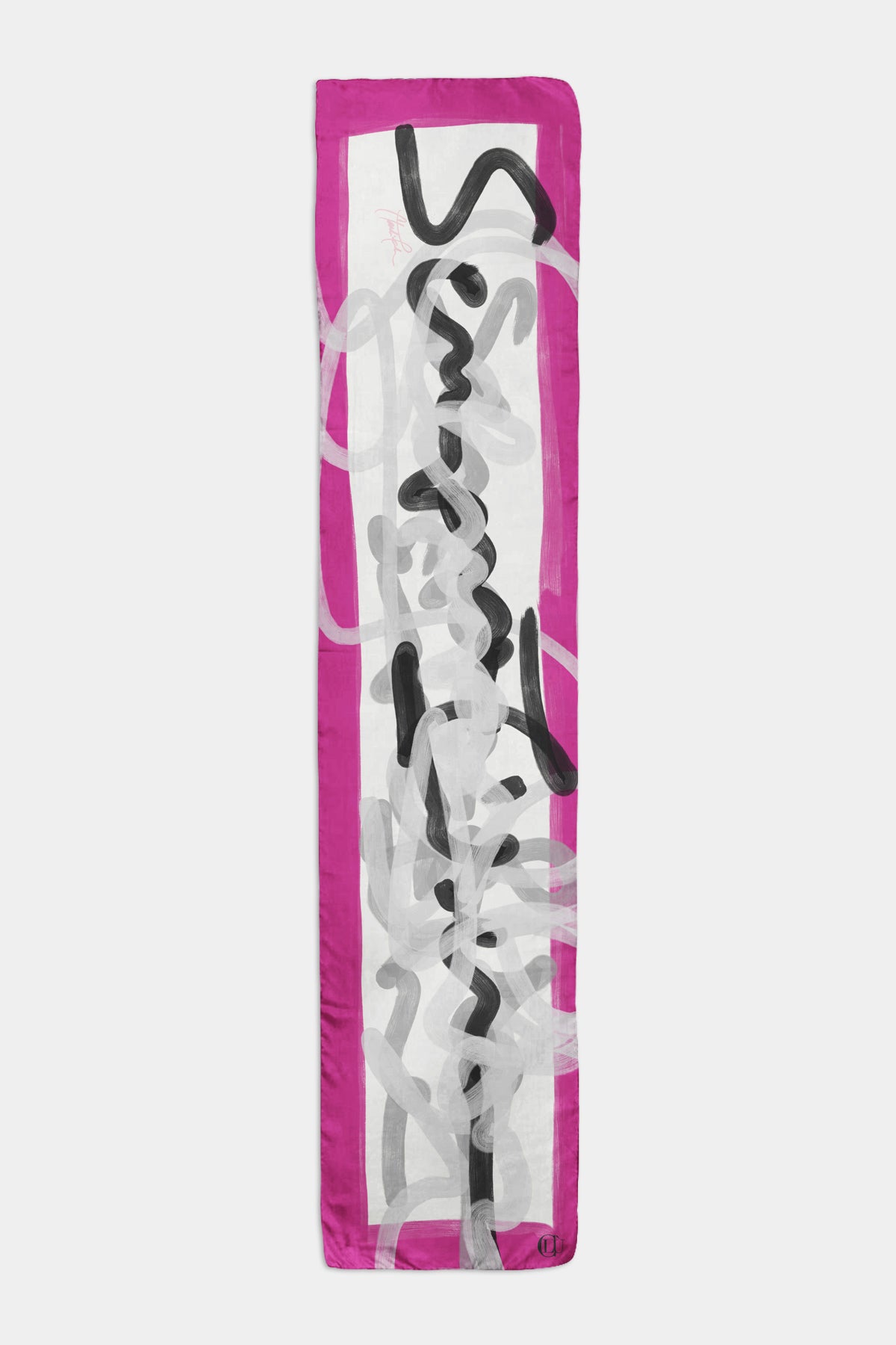This version of the scarf is framed with a bright border in several bold colorways, encapsulating the vibrant spirit of the aria. It's a visual representation of the exhilaration of going from joy to joy, always free, as the lead soprano does in Verdi's opera.