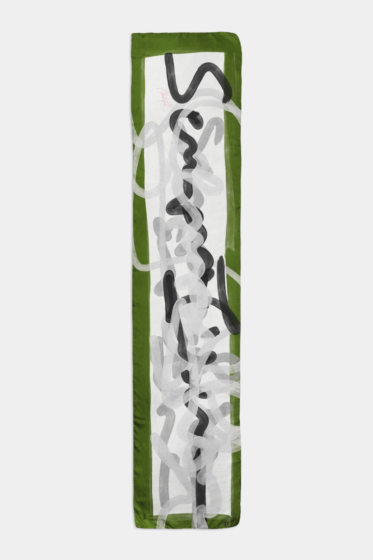 This silk scarf is an original work, painted by the artist while listening to the music of this aria, translating the emotions and artistry into a wearable masterpiece. It's designed to be worn with grace and style, adding a touch of art and vibrancy to your daily ensemble.