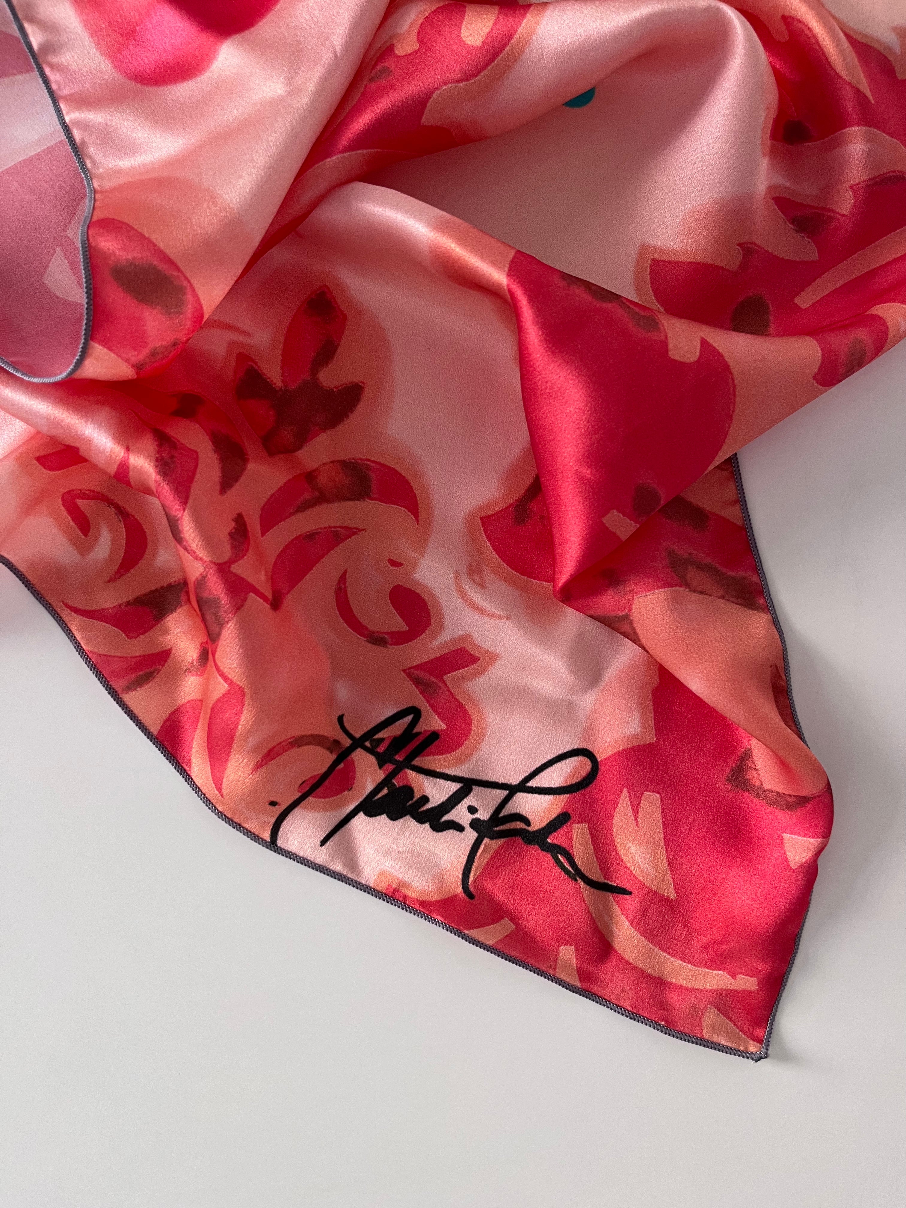 The silk scarf comes wrapped in our signature pink packaging and includes an authenticity card signed by the artist.